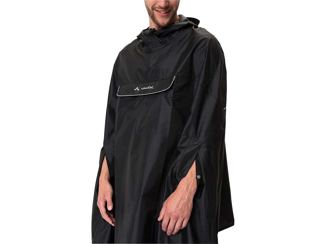 Der Regenponcho von VAUDE wiegt gerade einmal 290 g und schützt effektiv vor Nässe! Ob beim Radfahren oder bei der Wanderung, der Poncho ist wasserdicht und windabweisend. Er lässt sich komplett in der integrierten Tasche verstauen, sodass er im Rucksack kaum Platz braucht. Der Unisex-Regenponcho verfügt über eine angeschnittene Kapuze, eine Fronttasche, 2 seitliche Eingriffe und reflektierende Elemente. Eco Finish sorgt umweltgerecht dafür, dass der Wetterschutz wasserabweisend ist.