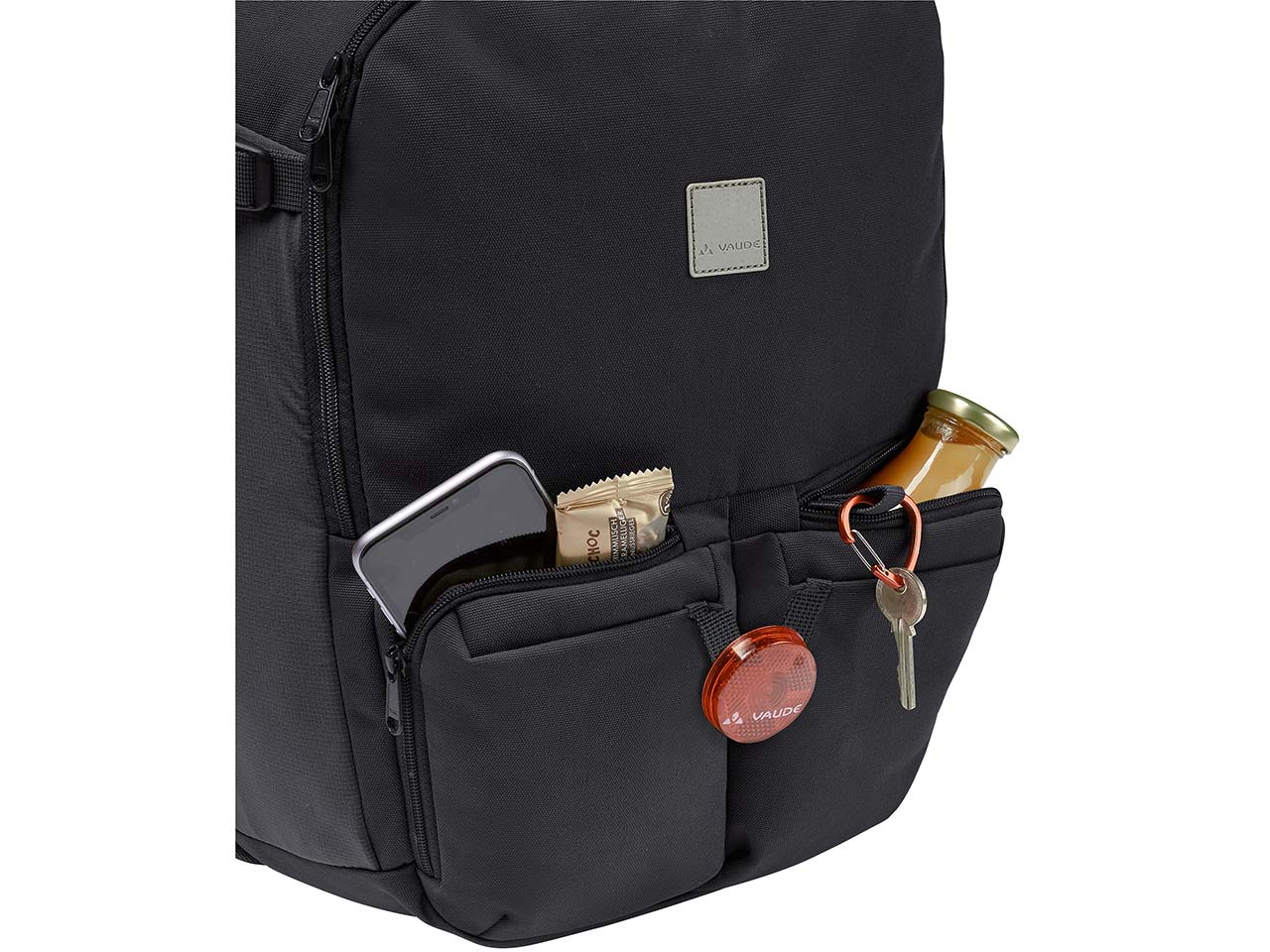 Das mittelständische Familienunternehmen VAUDE setzt auf Umwelt- und Sozialverträglichkeit: Das firmeneigene Green Shape Logo kennzeichnet langlebig designte Produkte aus nachhaltigen Materialien und ressourcenschonender Herstellung. Zusätzlich wird auf faire Löhne und gute Arbeitsbedingungen in der gesamten Lieferkette geachtet. Als Mitglied der unabhängigen Non-Profit-Organisation Fair Wear Foundation verpflichtet sich VAUDE, deren strengen Verhaltenskodex (Code of Labour Practices) einzuhalten. Das Produkt ist mit dem Siegel Grüner Knopf ausgezeichnet. Dieses kennzeichnet Textilien, die unter besonders hohen Sozial- und Umweltstandards hergestellt sind. Der gesamte Produktionsablauf wird demnach nach strengen Kriterien überwacht und somit ist die nachhaltige Fertigung sichergestellt. Durch dieses anerkannte Zertifikat werden außerdem Risiken wie Kinder- und Zwangsarbeit, Menschenrechtsverletzungen sowie Diskriminierungen und deren tatsächliche Auswirkungen regelmäßig überprüft. Für alle Mitarbeitenden ist in der produzierenden Fabrik ein Beschwerdemechanismus eingeräumt.