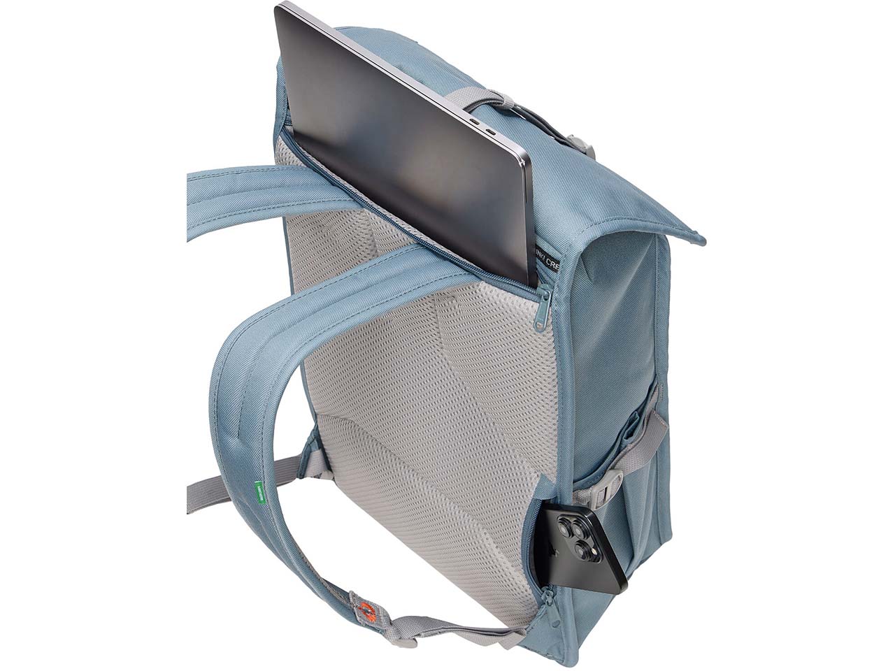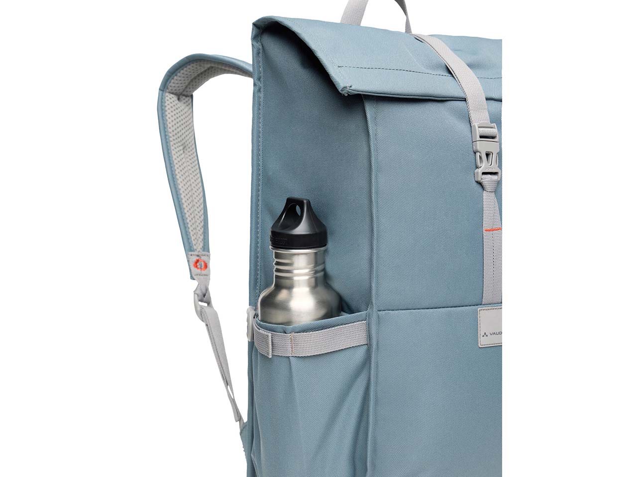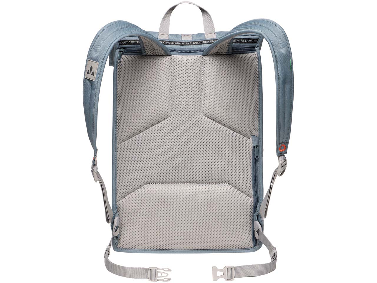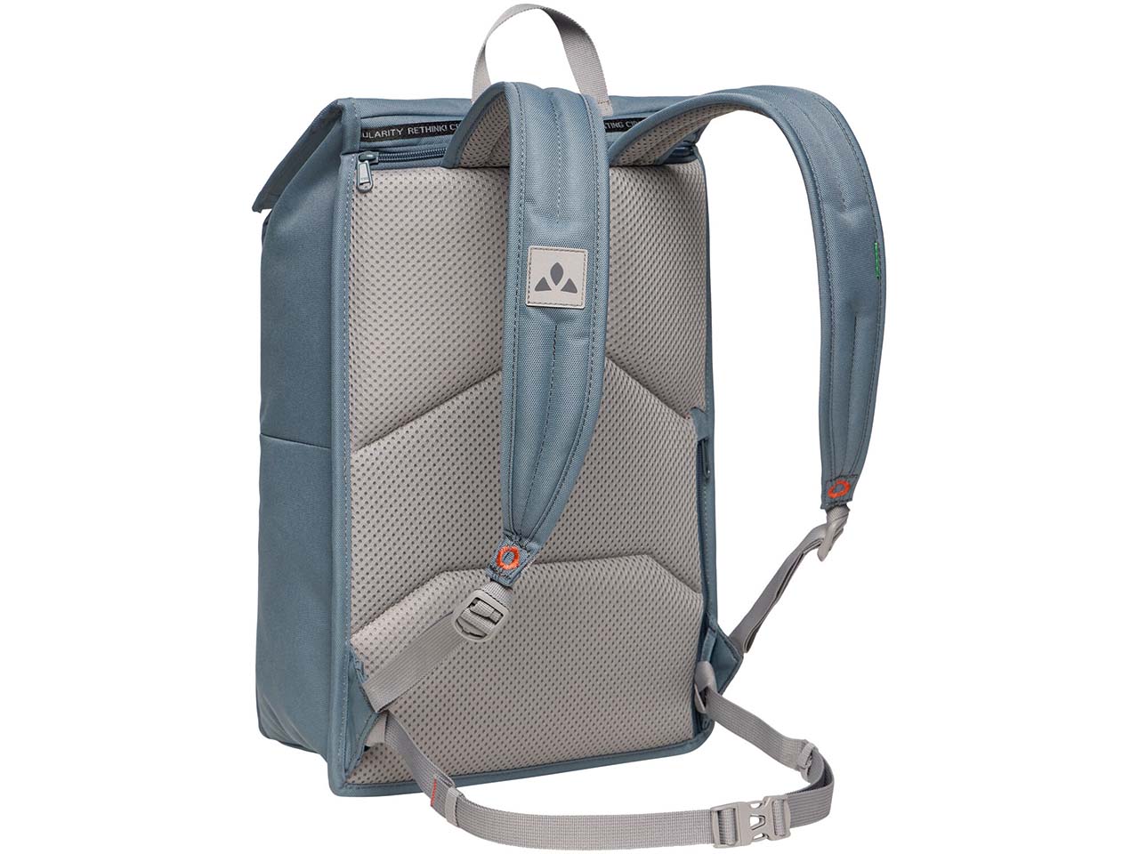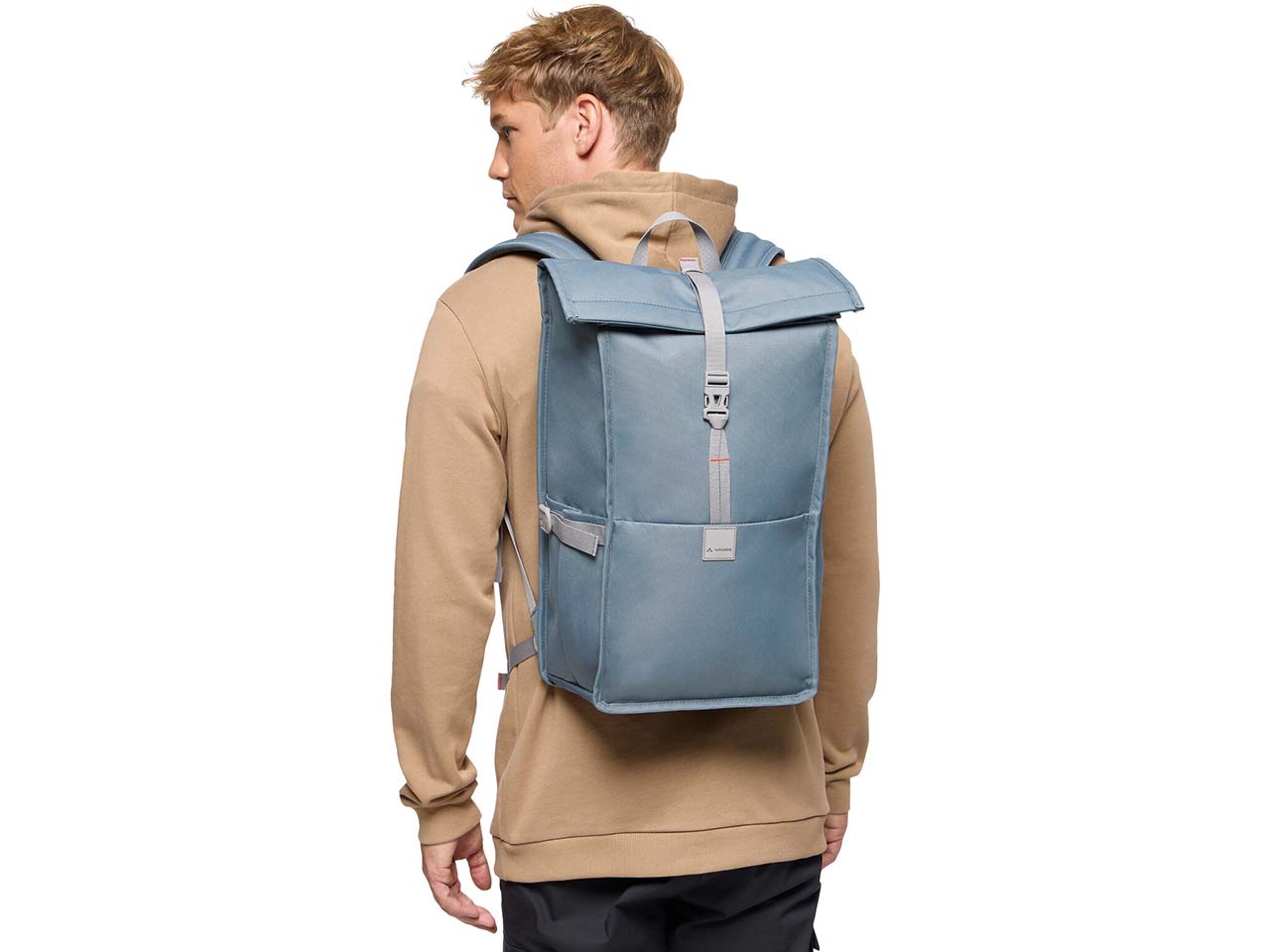 Alles immer dabei – ob auf Reisen, im Büro oder im Alltag! Der Daypack von VAUDE bietet mit seinen 20 l Volumen und dem übersichtlichen Hauptfach viel Platz, um alles zu verstauen. Ein separates, gepolstertes Laptopfach bewahrt Geräte bis 15,6“ sicher auf. Dank Wickelverschluss ist ein schneller Zugriff auf den Inhalt des Rucksacks möglich. Innere Einsteckfächer sorgen für Übersichtlichkeit. Mit Flaschenhalter, seitlichen Außentaschen und hinterem Reißverschlussfach ist an alles gedacht. Der Rücken liegt nah am Körper und ist gepolstert. Die Schulterträger sind ebenfalls gepolstert und in der Länge verstellbar. Der Gurtband-Hüftgurt unterstützt, wenn der Daypack mal schwerer ist. Dieser lässt sich aber auch abnehmen. Der Rucksack ist Teil von VAUDEs Kreislaufkonzept: Das Hauptmaterial besteht aus recyceltem Polyester.