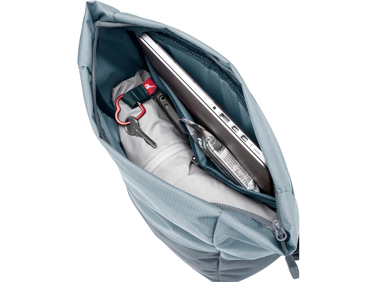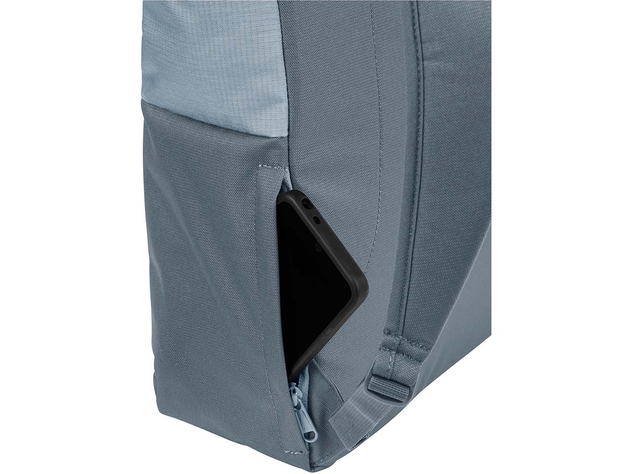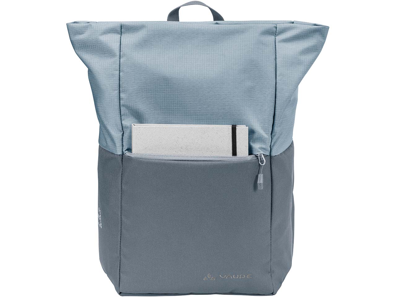 Minimalistischer Style, der das ganze Jahr über gut aussieht und dazu noch richtig praktisch ist: Der „Wala“ von VAUDE ist ein echter Stadtrucksack, der in Alltag und Freizeit immer dabei ist. Das Hauptfach mit Reißverschluss bietet Platz für Bücher, Ordner, Blöcke und Co. Im gepolsterten Einsteckfach ist das Tablet sicher aufbewahrt. Die Fronttasche mit Reißverschluss, das hintere Reißverschluss-Fach und das äußere Einsteckfach komplettieren das durchdachte Design. Der obere Tragegriff eignet sich, um den Rucksack in der Hand zu tragen. Rücken und Schulterträger sind für höchsten Tragekomfort gepolstert. Die Träger sind natürlich auch in der Länge verstellbar. Eco Finish sorgt dafür, dass dem Rucksack aus recyceltem Polyester Regenwetter nichts ausmacht. Der Rucksack hat ein Volumen von 15 l. B 28 x T 15 x H 42 cm.