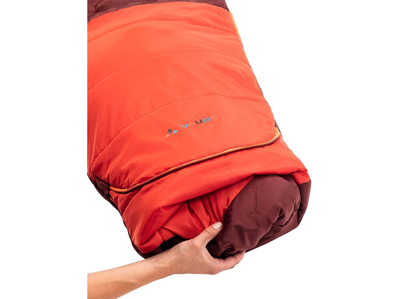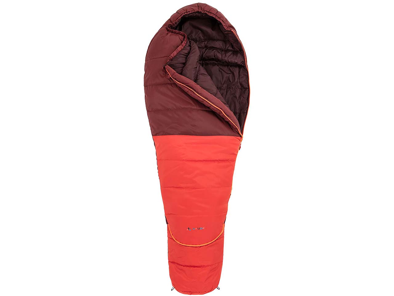 Kuschelweicher Komfort beim Campen für die Kleinsten! Der körperbetonte Mumienschlafsack von VAUDE ist speziell für Kinder entwickelt. Das Beste: Er wächst mit Kindern einfach mit und kann so über mehrere Jahre benutzt werden. Der Schlafsack eignet sich für eine Körpergröße zwischen 1,05 m und 1,35 m. Dabei ist die Längenverstellung dank Reißverschlusssystem kinderleicht zu bedienen. Da der Schlafsack schmaler geschnitten ist als solche für Erwachsene, ist die Wärmeeffizienz optimal. Im Inneren befindet sich eine Isolation aus recyceltem Polyester, die warm hält und schnell trocknet. Weitere Highlights sind die Konturkapuze, der Wärmekragen und die Innentasche zum Verstauen von Utensilien.