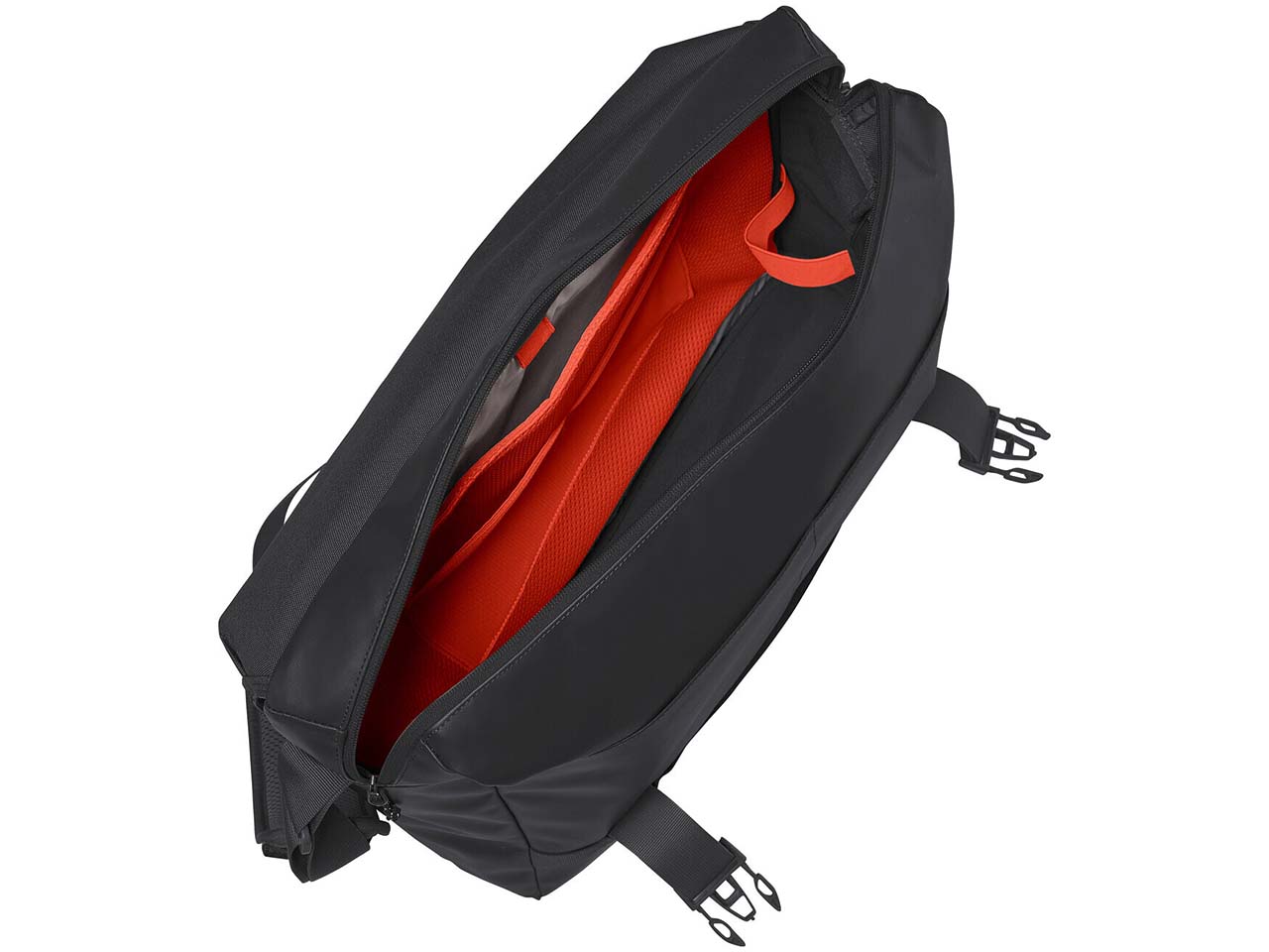 Große Tasche! Jedoch nicht gerade tief. Solange kein Laptop darin ist, wird der Gebrauch durch eine Krümmung erschwert. Wenn die Tasche gut befüllt ist, steht die kurze Überwurfklappe ab, sie muss daher eingeklippt werden. Die Tasche zeigt nach geringer Nutzung viele Kratzer auf der matten zur Hüftseite zeigenden Oberfläche. Damit wird die Tasche recht schnell ein persönliches Stück.