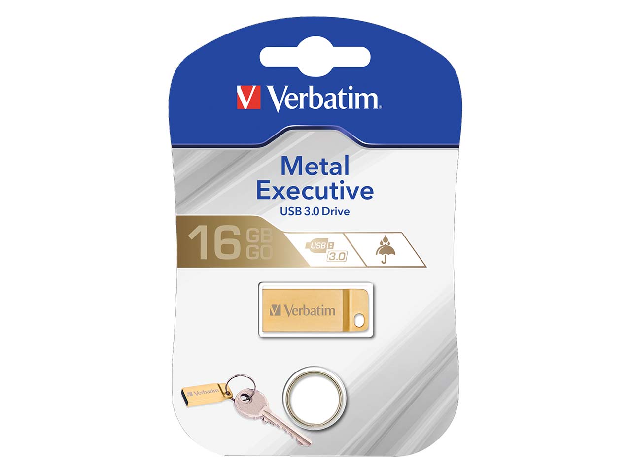 Der Verbatim USB-Stick "Metal Executive" in der Premium Gold Edition verfügt über ein besonders robustes, sehr kleines und schlankes Metallgehäuse und hält damit den alltäglichen Anforderungen stand. Durch die USB 3.0-Schnittstelle werden Ihnen schnelle Datenübertragungsgeschwindigkeiten von bis zu 80 MB/s ermöglicht. Mit praktischem Schlüsselring aus Metall.