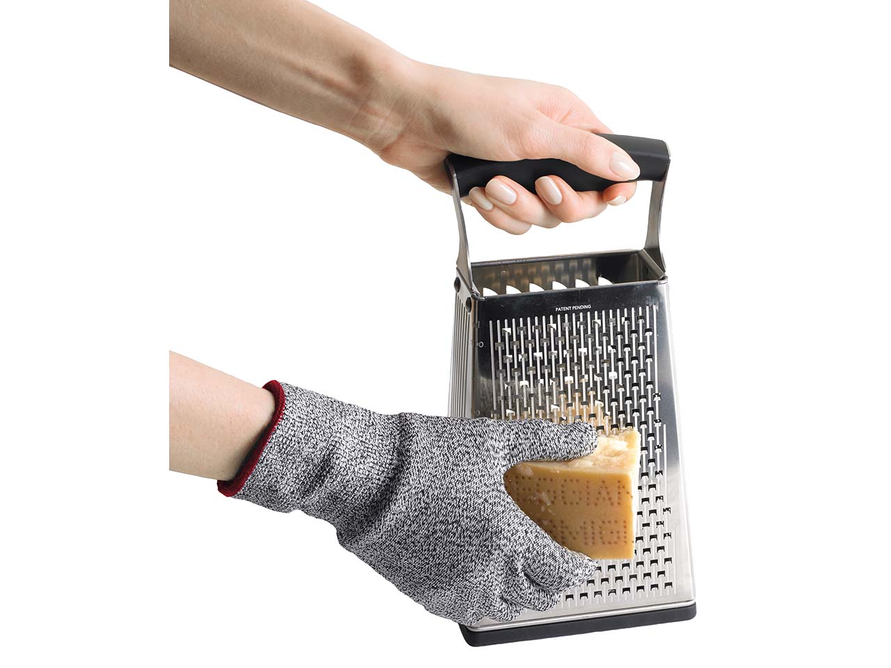 Die Vierkantreibe ist aus Edelstahl gefertigt und dadurch außerordentlich robust und langlebig. Der verwendete Edelstahl ist rostfrei und hygienisch. Die Reibe ist mit innovativer Surface Glide Technology ausgestattet, durch die eine größere Schnittfläche und so bessere Ergebnisse entstehen.