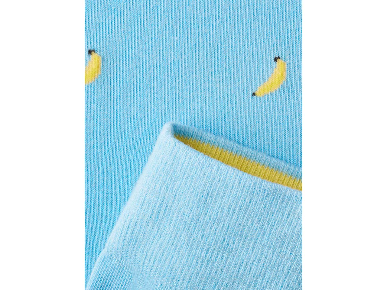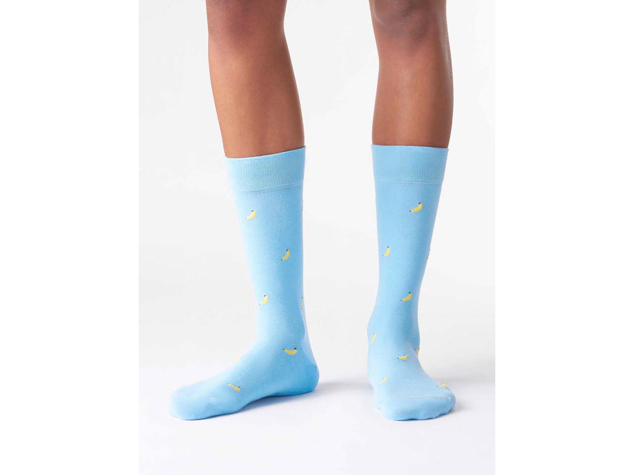 Die Bananen auf den Socken machen jedes Outfit zu einem echten Hingucker. Die weichen, mit 200 Nadeln gestrickten Socken sind ein echtes Highlight. Sie fühlen sich dank hochwertigem Materialmix aus Bio-Baumwolle, recyceltem Polyamid und einem kleinen Anteil Elasthan wunderbar am Fuß an. Der Mix sorgt dafür, dass die Socken atmungsaktiv und temperaturausgleichend sind. Spitze und Ferse sind für eine lange Lebensdauer verstärkt.