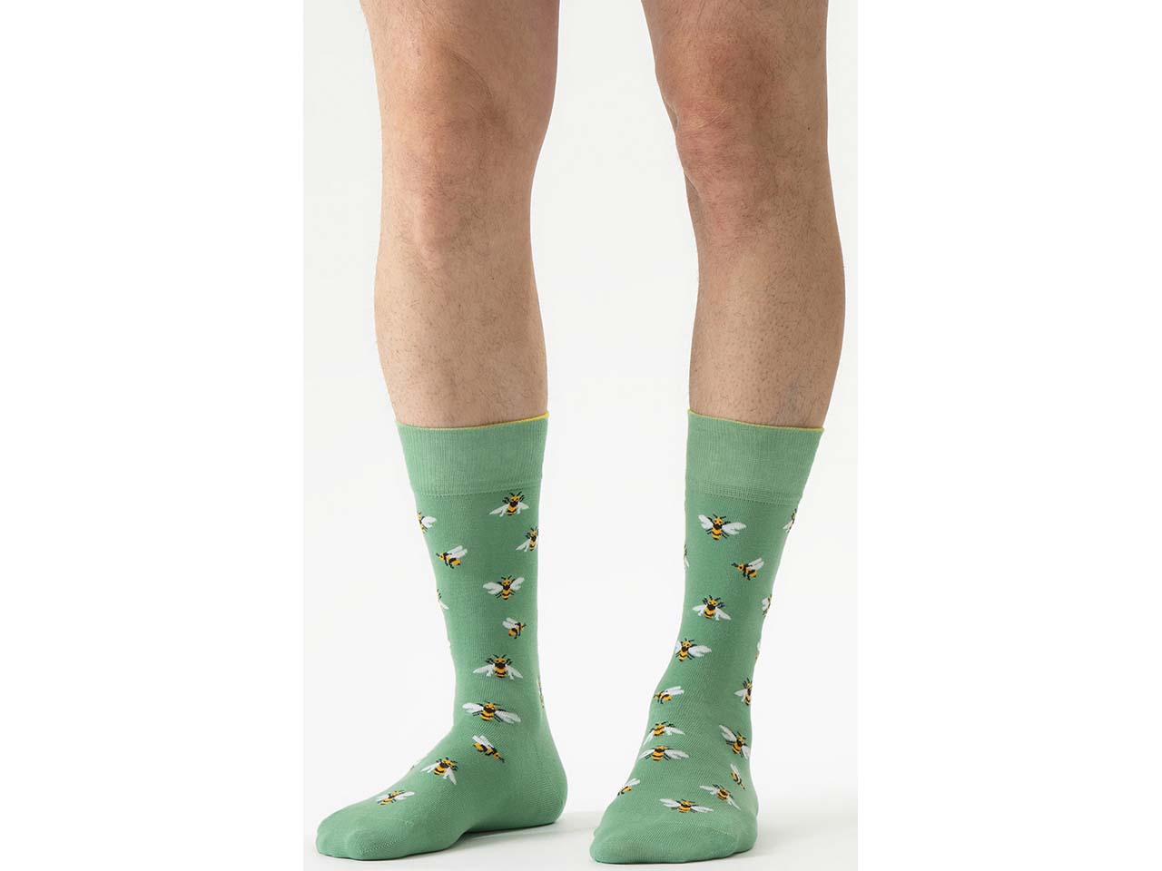 Beim Anblick der fleißigen Bienchen auf den Socken denkt man sofort an den Sommer! Die bequemen Socken fühlen sich dank Materialmix aus Bio-Baumwolle, Polyamid und einem geringen Anteil Elasthan wunderbar weich auf der Haut an. Die Socken mit dem von der Natur inspirierten Motiv sitzen perfekt am Fuß und sind besonders atmungsaktiv.
