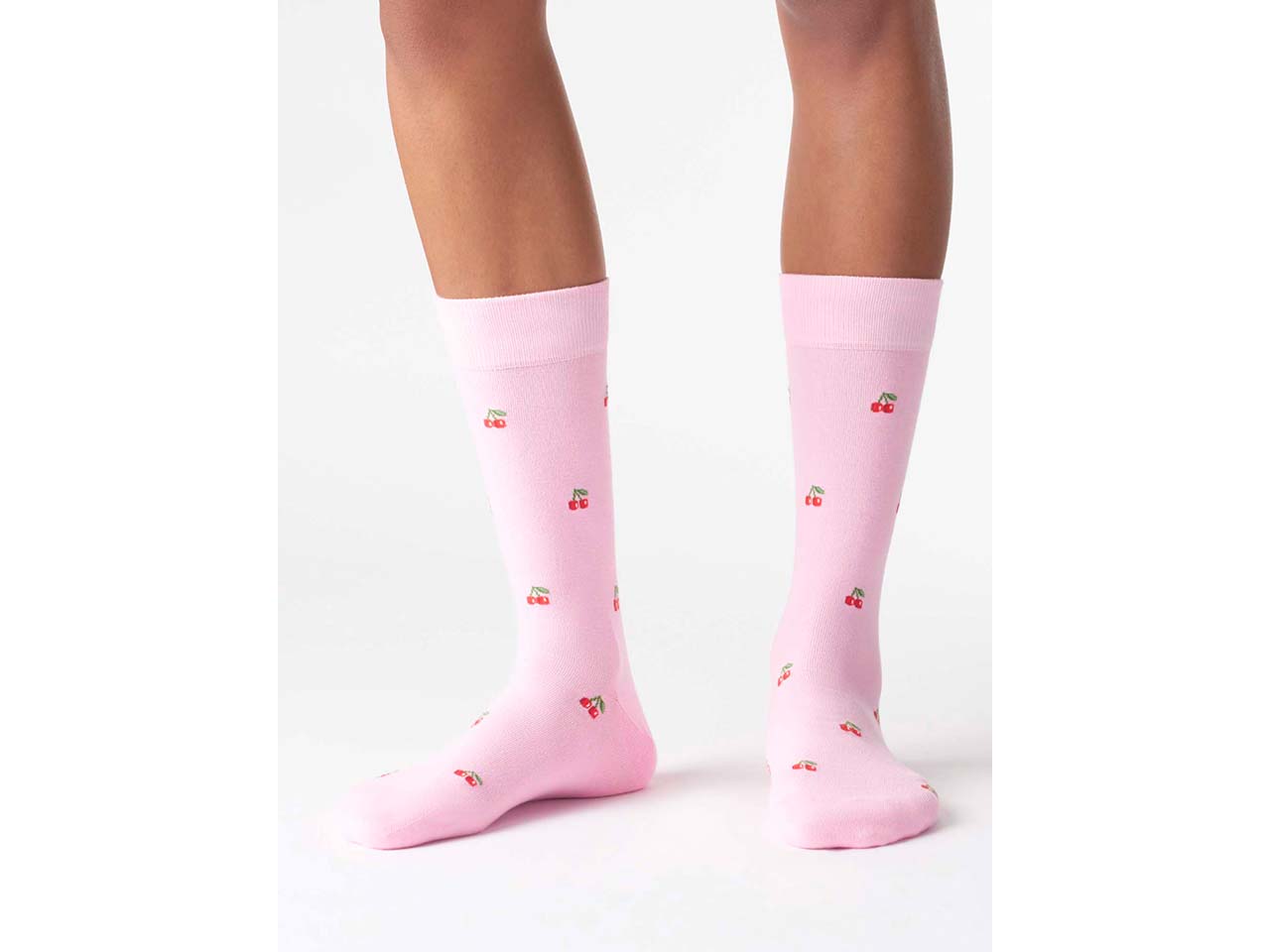 Das ist wirklich die Kirsche auf der Torte – oder zum Outfit! Das mit 200 Nadeln gestrickte Kirschmotiv verleiht diesen weichen Socken ihre einzigartige Optik. Hoher Tragekomfort entsteht durch den Materialmix aus Bio-Baumwolle, recyceltem Polyamid und dem kleinen Anteil Elasthan. Die Socken sitzen perfekt am Fuß, sind atmungsaktiv und temperaturausgleichend. Für eine lange Lebensdauer sind Spitze und Ferse verstärkt.