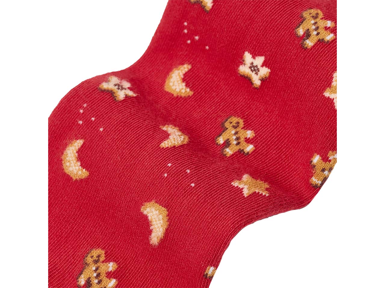 Vanillekipferl, Butterkeks und Co. gehören zur Advents- und Weihnachtszeit dazu – und diese Socken ab heute auch! Die roten Socken aus Bio-Baumwollmix sind mit weihnachtlichen Köstlichkeiten gespickt, bei denen man so richtig Appetit bekommt. Nicht nur ein Highlight zur Weihnachtszeit! Spitze und Ferse der Socken sind verstärkt, wodurch eine langlebige Qualität entsteht.