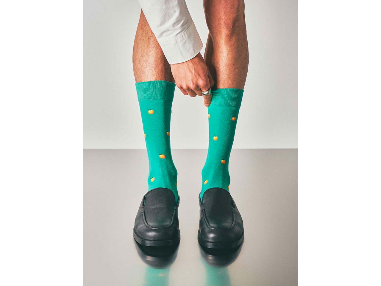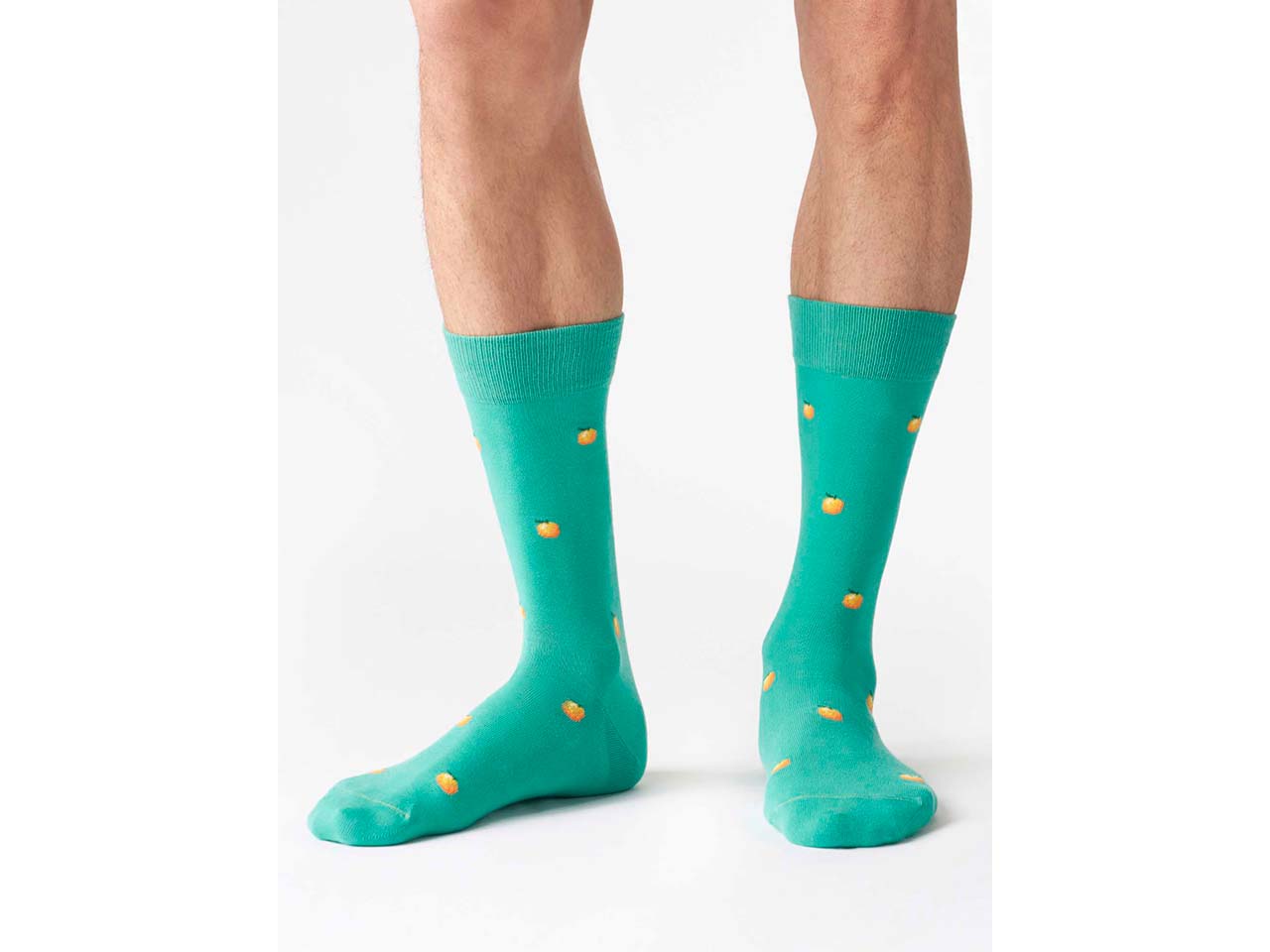 Orange sind die Socken nicht – aber sie haben Orangen als Motiv! Der coole Look ist perfekt, um Outfits den letzten Schliff zu verpassen. Die Socken sehen auch nicht einfach nur gut aus, sie fühlen sich auch so an. Sie bestehen aus Bio-Baumwolle, recyceltem Polyamid und einem kleinen Anteil Elasthan. Dadurch entsteht eine atmungsaktive, temperaturausgleichende Qualität. Spitze und Ferse sind für eine lange Lebensdauer verstärkt.