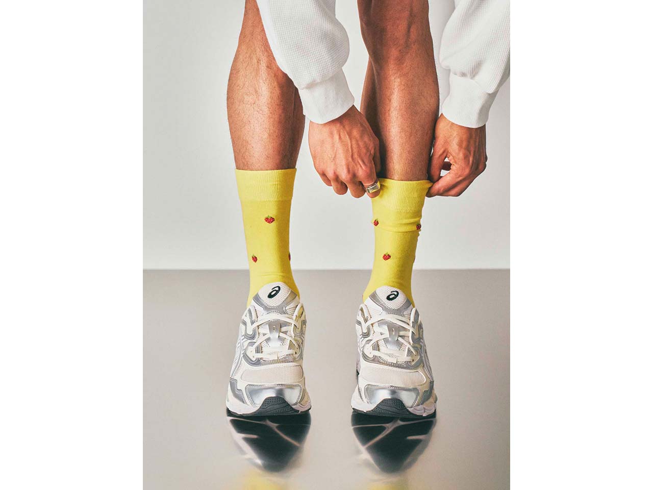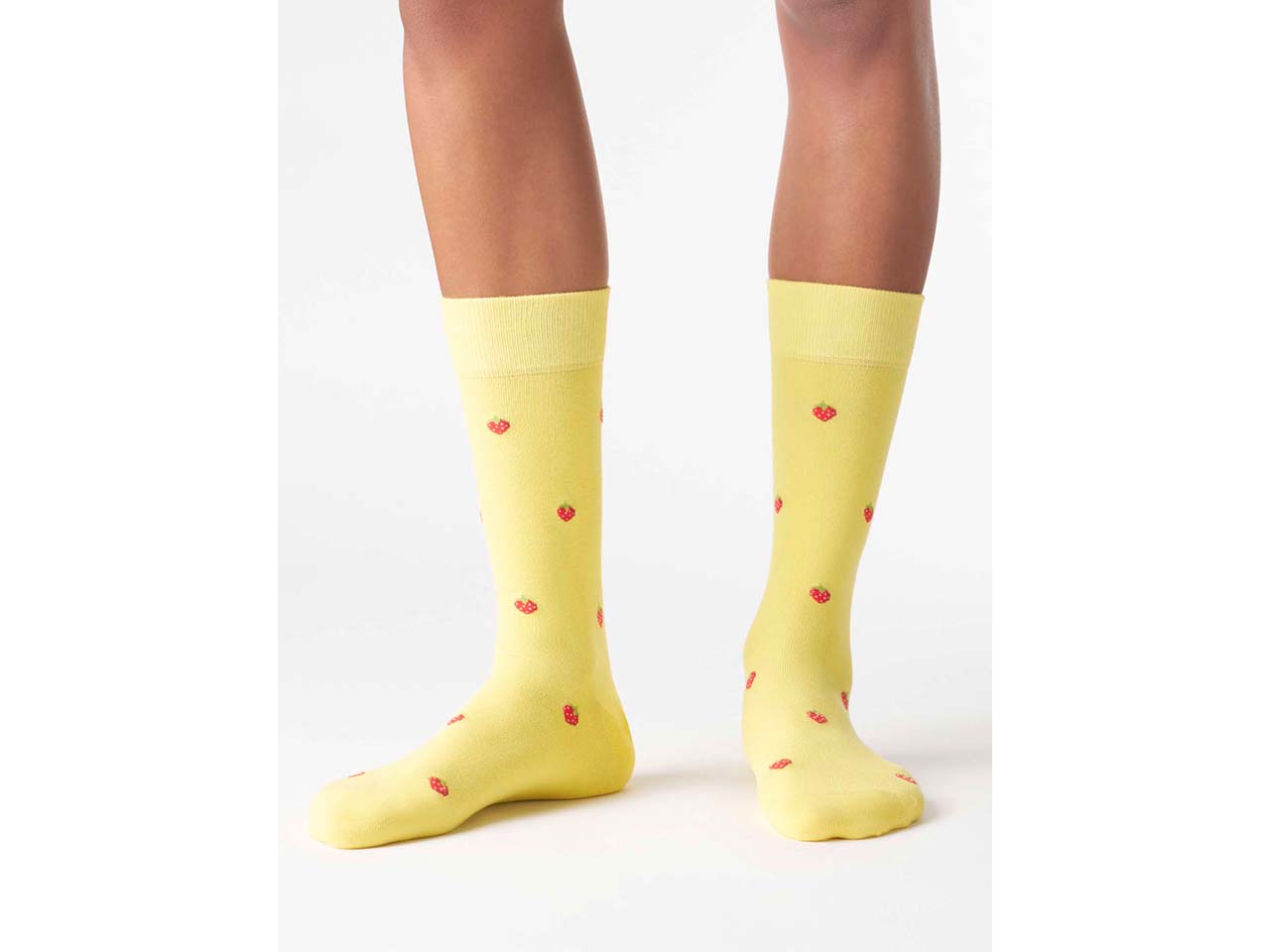 Wie wäre es mit ein paar Erdbeeren für unterwegs? Bei diesen Socken ist der süße Snack immer mit dabei. Das fröhliche, sommerliche Gelb der Socken sorgt jederzeit für gute Laune. Der hochwertige Materialmix aus Bio-Baumwolle, recyceltem Polyamid und einem geringen Anteil Elasthan fühlt sich fantastisch am Fuß an. Die Socken sind weich, atmungsaktiv und temperaturausgleichend. Ferse und Spitze sind verstärkt, was die Socken langlebig macht.