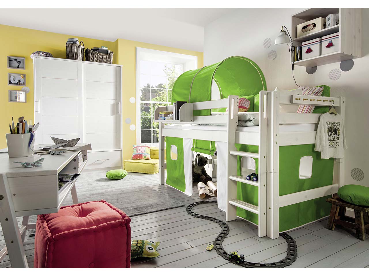 Ein Ort, um sich zurückzuziehen, um zu spielen und um sich auszutoben: Der 4-teilige Vorhang verwandelt das „Infanskids“ Hochbett in einen ganz besonderen Ort für Kinder! Die Anbringung ist dank Klettband kinderleicht. In der Mitte lässt sich das schmale Rollo nutzen und kann sogar hochgerollt werden. Rechts und links hat der Vorhang jeweils ein kleines Fenster. Hergestellt ist der Vorhang aus weicher Baumwolle, die umweltschonend eingefärbt ist. Erhältlich in verschiedenen Längen und Ausführungen.