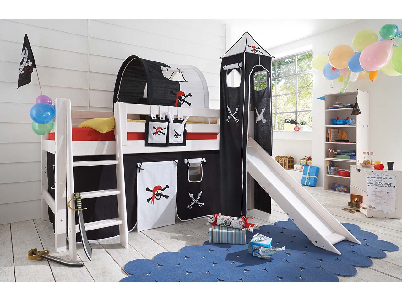 Ein Ort, um sich zurückzuziehen, um zu spielen und um sich auszutoben: Der 4-teilige Vorhang verwandelt das „Infanskids“ Hochbett in einen ganz besonderen Ort für Kinder! Die Anbringung ist dank Klettband kinderleicht. In der Mitte lässt sich das schmale Rollo nutzen und kann sogar hochgerollt werden. Rechts und links hat der Vorhang jeweils ein kleines Fenster. Hergestellt ist der Vorhang aus weicher Baumwolle, die umweltschonend eingefärbt ist. Erhältlich in verschiedenen Längen und Ausführungen.