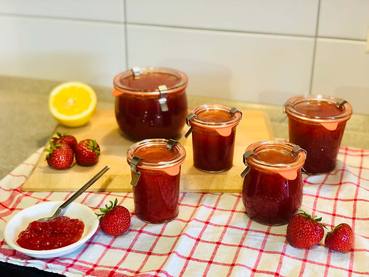 Zu de Hauptbestandteilen von Glas gehören Quarzsand, Kalk und Soda. Das ist auch bei den Weck Gläsern der Fall. Sie bestehen zu rund 70 % aus Quarzsand, 10 % Kalk und 13 % Soda. Als Stabilisator kommt Dolomit zum Einsatz, der das Glas unempfindlicher gegen Temperaturschwankungen macht. Durch die Zugabe von Feldspat wird das Glas widerstandsfähiger und Natriumsulfat verhindert die Bläschenbildung.