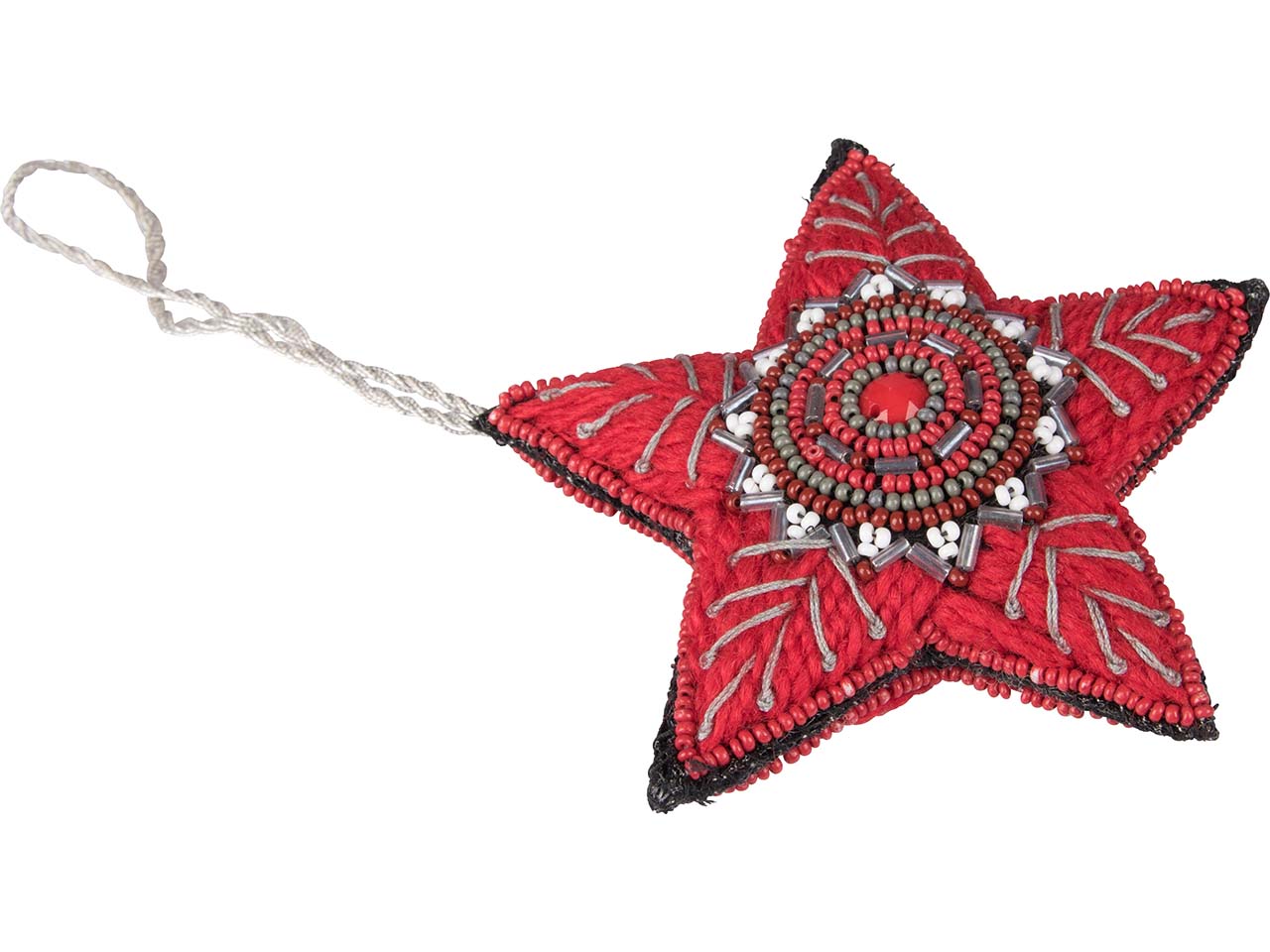 Wunderschöne Dekoration, die funkelt und strahlt! Detailreich und liebevoll kommt der Sternenanhänger daher, der aus weicher Baumwolle gefertigt ist. Die Glasperlen und die Stickerei sind sorgfältig verarbeitet und bereiten Jung und Alt viel Freude. Hergestellt wird der Dekoanhänger in Indien, wo sich die Stiftung TARA Projects aktiv gegen soziale Ungerechtigkeiten und für Fairen Handel einsetzt. Der Anhänger sieht also nicht nur gut aus, er tut auch Gutes! Die Sternenform erinnert an Winter und Weihnachten, sodass der Anhänger vor allem in dieser Zeit seinen großen Auftritt hat. Die Dekoration zum Aufhängen ist auch ein tolles Geschenk! Ø 9 cm.