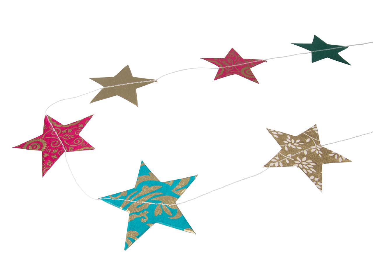 Weltpartner Girlande "Sterne" aus handgeschöpftem Recyclingpapier