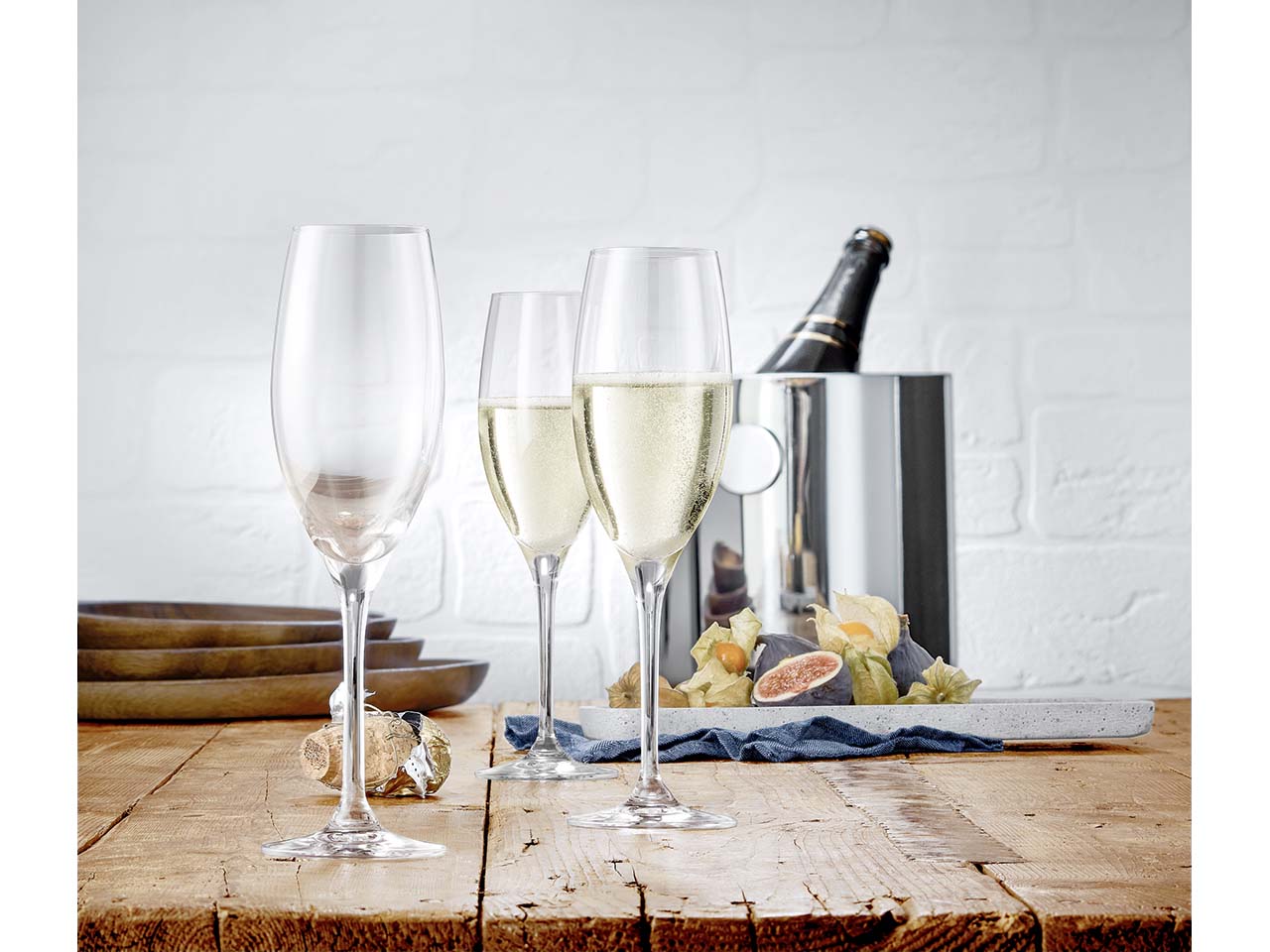 - 6er-Set zeitlos-schlichte Champagnerkelche aus Kristallglas
