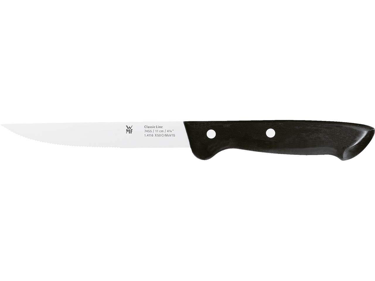 | Länge: | Gemüsemesser 18,5 cm, Steakmesser 22 cm, Fleischmesser 34,5 cm, Zubereitungsmesser 27 cm, Brotmesser mit Wellenschliff 34 cm |
