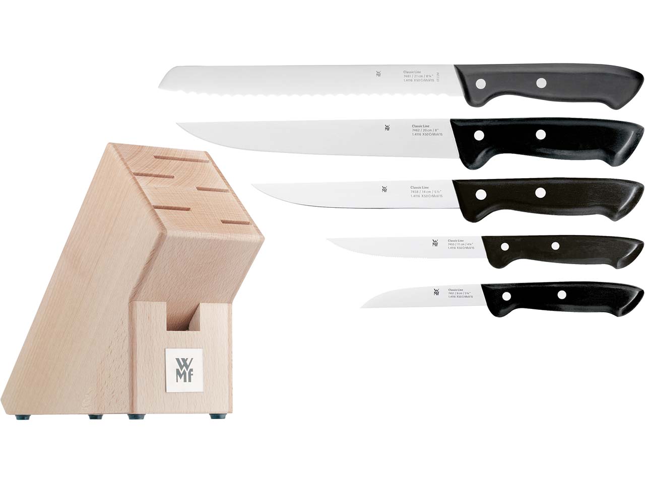 6-teiliges Messerset mit platzsparendem Messerblock aus Buchenholz