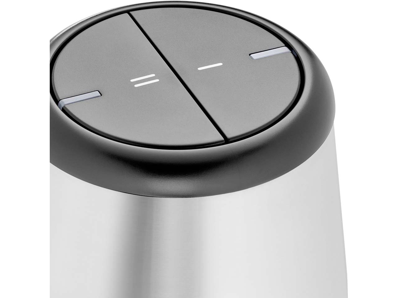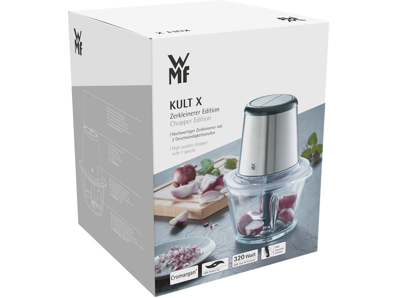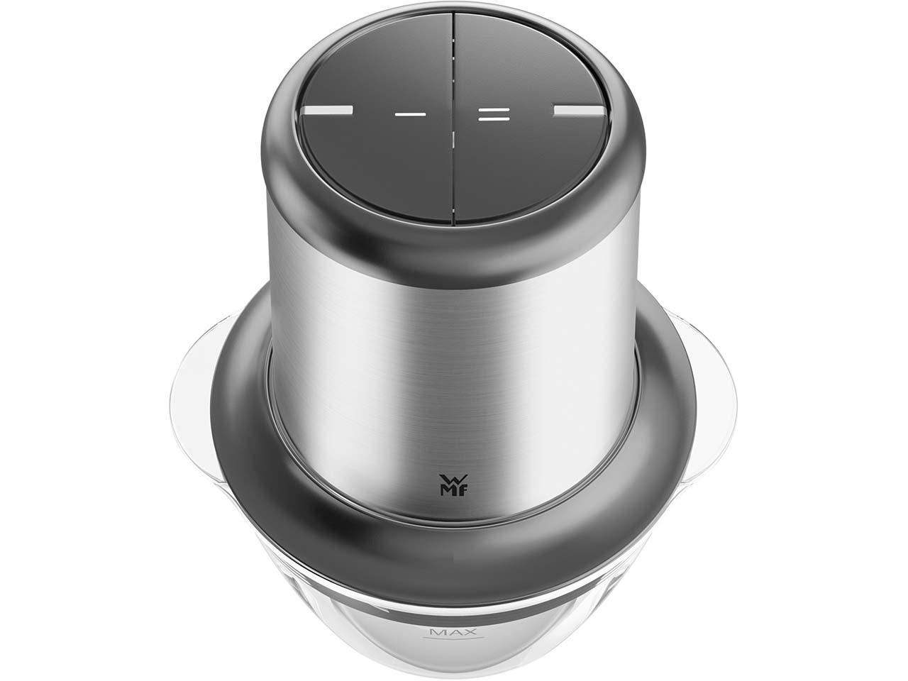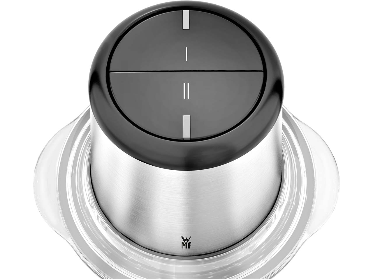 Ob Obst, Gemüse, Kräuter oder Nüsse – dieser Zerkleinerer von WMF hackt, mixt, mahlt oder schneidet es! Dafür verfügt das Gerät über ein 2-flügeliges Edelstahlmesser, das die Zutaten präzise verarbeitet. Der Zerkleinerer mit 320 W Leistung arbeitet in zwei Geschwindigkeitsstufen. Die zerkleinerten Zutaten landen im hochwertigen Glasbehälter. Das LED-beleuchtete Bedienfeld macht die Nutzung kinderleicht.