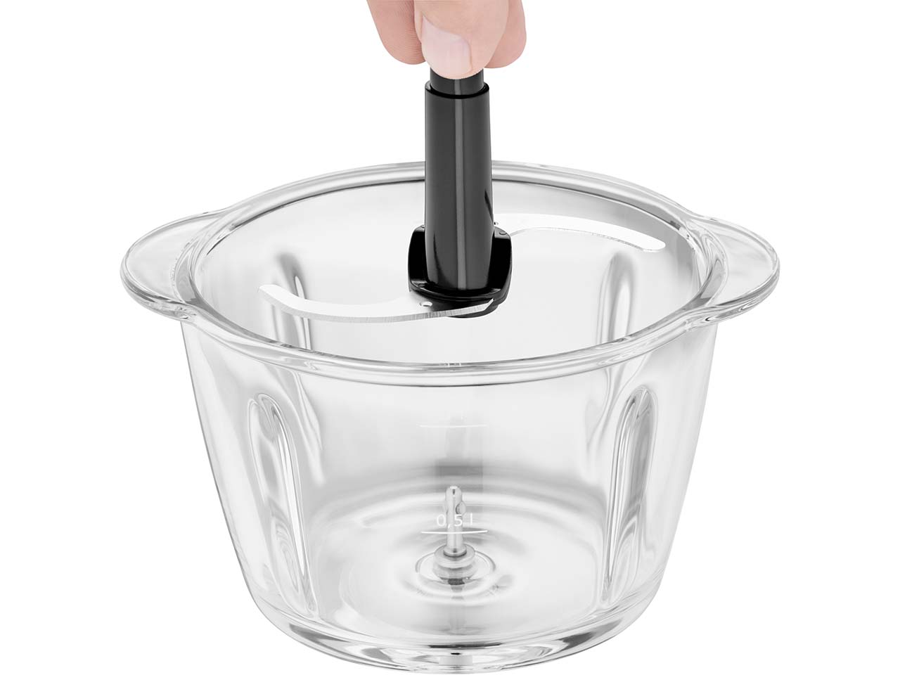 - Für müheloses Schneiden, Hacken, Mixen und Zerkleinern
