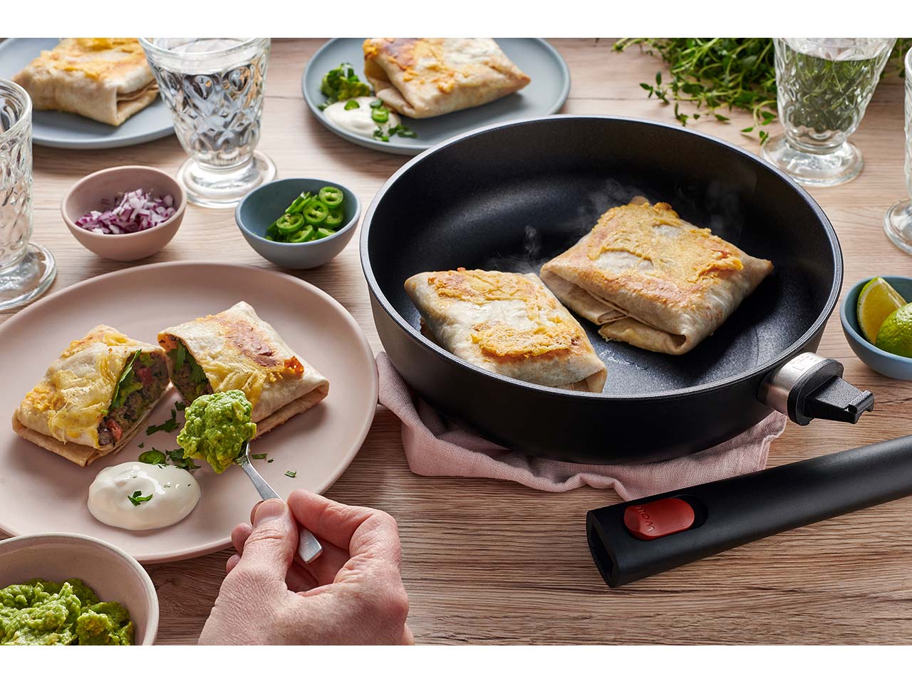 Woll arbeitet stetig daran, die Auswirkungen der Produkte auf die Umwelt gering zu halten. Dafür setzt das Unternehmen auf regionale Materialien und kurze Transportwege. Die Herstellung der Pfannen erfolgt vollständig in Deutschland. Bei der Produktion wird nach Möglichkeit auf Chemikalien verzichtet – so ist die ECO Lite-Serie entstanden, die ohne PFAS auskommt. PFAS sorgen für hervorragende Antihaft-Eigenschaften, sind aber sogenannte Forever Chemicals, die sich negativ auf Mensch und Umwelt auswirken.