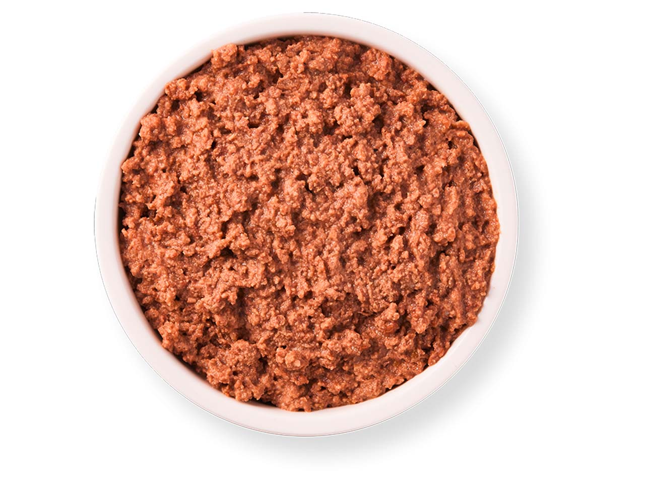 60,6 % Schwein* (Herz*, Niere*, Lunge*, Leber*, Milz*), Sonnenblumenöl*, Mineralstoffe, Erbsen* (1,36 %), Tapiokastärke* (0,55 %), Sonnenblumenkernschalen* (0,29 %), Petersilie* (0,1 %), Thymian* (0,1 %), Meeresalgen*, Spirulina* * aus kontrolliert ökologischer Erzeugung |