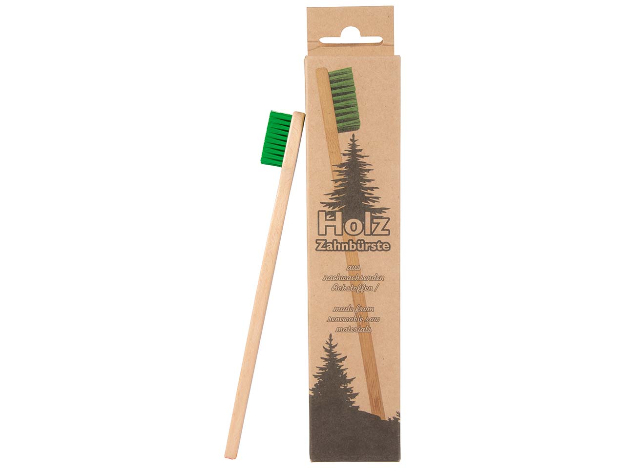 Die Holzzahnbürste wird in Deutschland hergestellt und hat einen Körper aus FSC-zertifiziertem Buchenholz. Durch die Herstellung vor Ort und die Verwendung einer heimischen Holzart sind die Transportwege im Vergleich zu Zahnbürsten aus Bambus kurz. Für die Borsten wird Bio-Kunststoff verwendet, der aus Rizinusöl gewonnen wird. Die Zahnbürste aus nachwachsenden Rohstoffen ist somit frei von Plastik und Erdöl.
