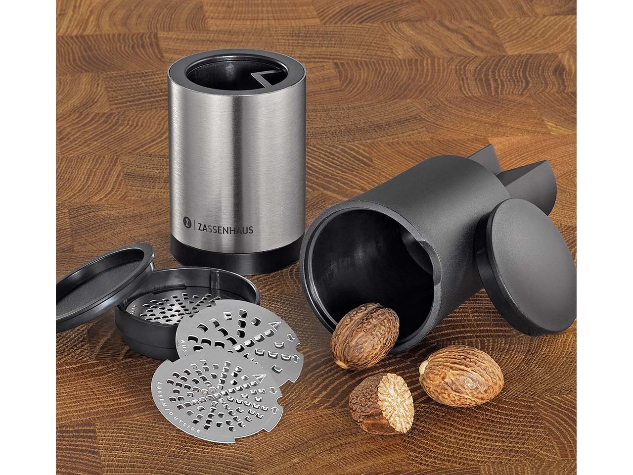 Der Alleskönner für Muskatnuss, Pfeffer, Zimt, langen Pfeffer, Zimt, Kräuter oder Getreidekörner! Die Gewürzmühle in moderner, zeitloser Optik ermöglicht ein sicheres Reiben und einfaches Dosieren von verschiedenen Gewürzen. Dabei helfen die drei austauschbaren, rasiermesserscharfen Reibscheiben. Einfach die passende auswählen und Gerichte ganz nach Geschmack verfeinern. Ein praktisches Vorratsfach hat die Gewürzmühle ebenfalls. Ein Must-have für die Küche.