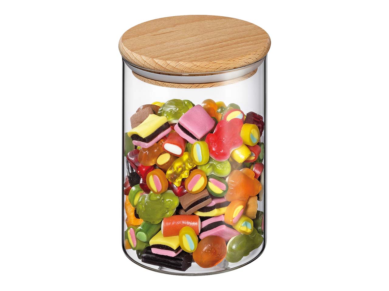 Mit dem Zassenhaus Vorratsglas behalten Sie einen Überblick über Nudeln, Reis, Mehl, Zucker, Salz und vieles mehr. Das transparente Borosilikatglas ermöglicht den Blick ins Innere, ohne den Deckel abzunehmen. Der Deckel aus massivem Buchenholz hat eine Silikondichtung und hält den Inhalt frisch. Vorratsdosen mit dem gleichen Durchmesser lassen sich stapeln. Fassungsvermögen von 850 ml.