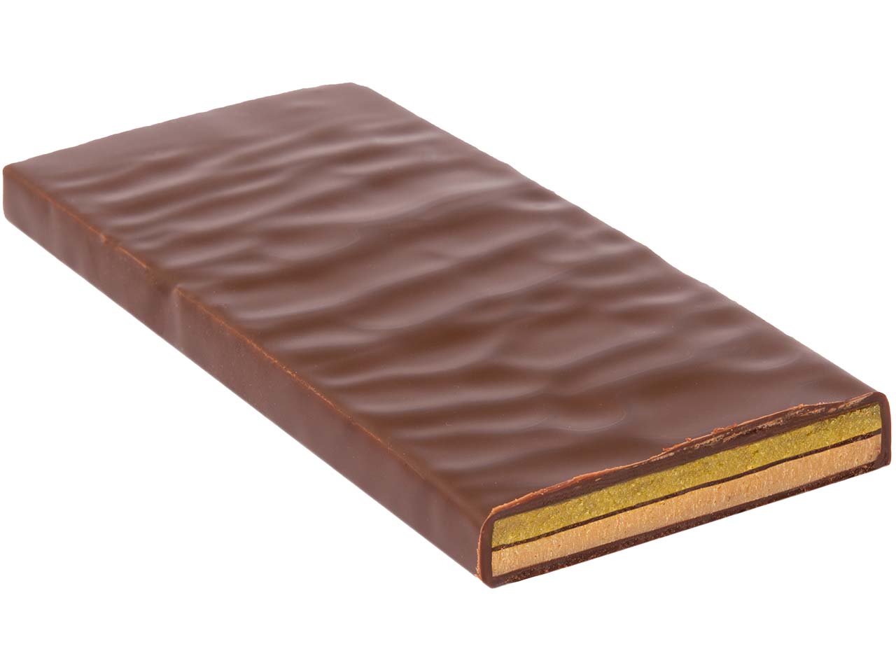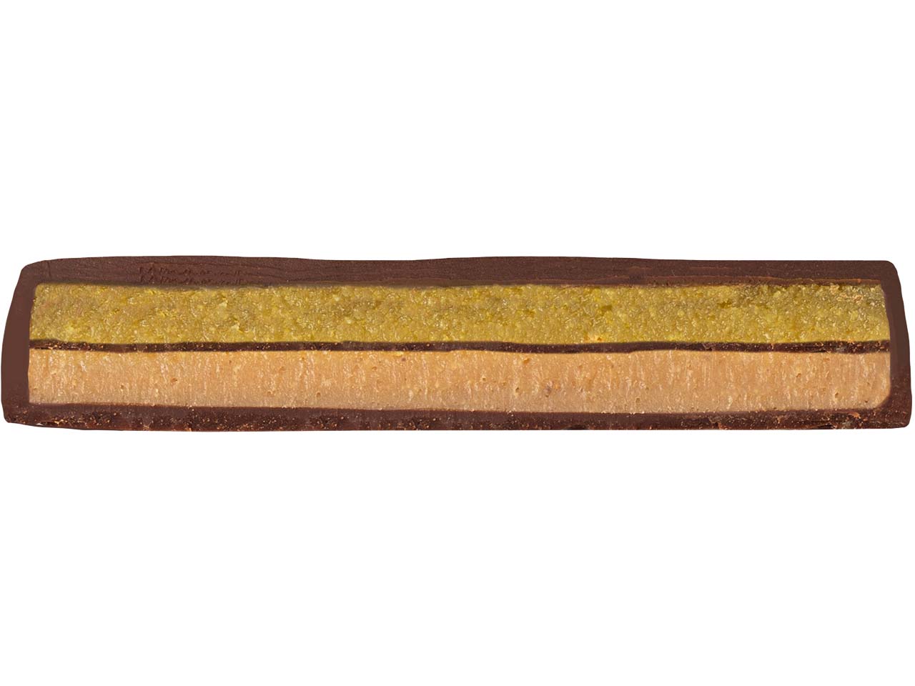 Veganer Genuss mit ganz vielen feinen Zutaten aus kontrolliert biologischem Anbau! Für den süßen Geschmack sorgt die Karamellschicht aus gebackener weißer Reiskuvertüre. Verfeinert ist die Kreation mit Kokos, etwas Mandelnougat, Timut-Pfeffer und Tonkabohnen. Diese bringen ein zuckersüßes Aroma mit. Einen fruchtigen Akzent setzt das Mandarinenmarzipan. Umhüllt sind die Schichten mit dunkler Schokolade mit 70 % Kakaoanteil. Inhalt 70 g.