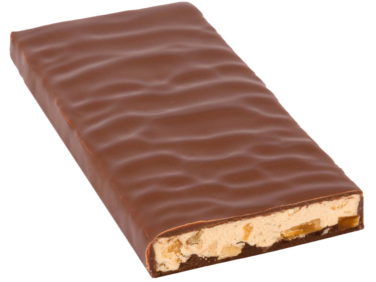 - Mit Mandelnougat und karamellisierten Mandeln gefüllte Vollmilchschokolade