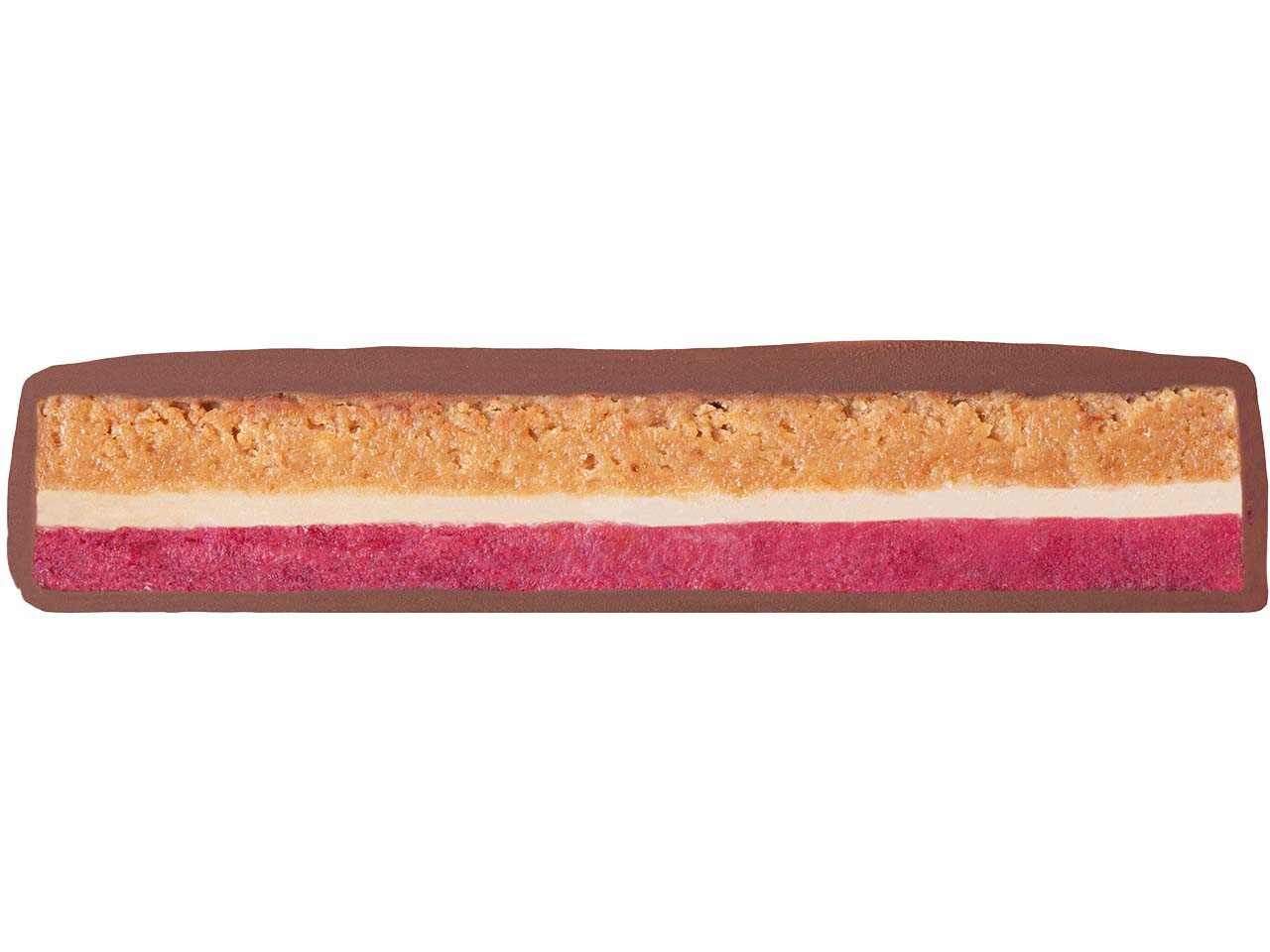 - Mit Schicht aus weißer Schokolade und Haselnussnougat