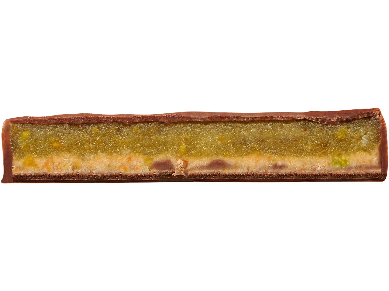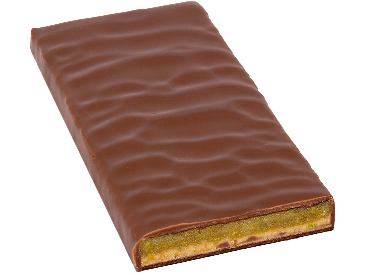 - Alkoholhaltige Vollmilchschokolade mit Pistazienmarzipanschicht