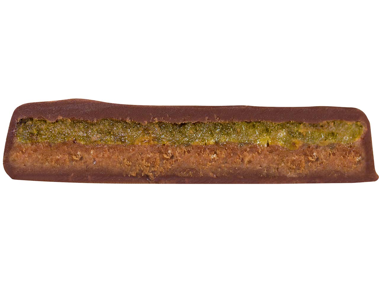 - Walnuss- und Marzipanfüllung überzogen mit dunkler Bergmilchschokolade