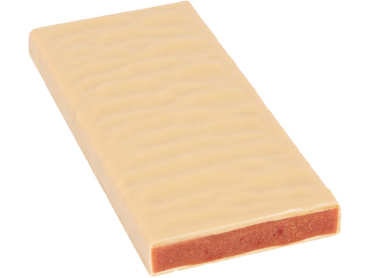 - Mit Erdbeercreme gefüllte, weiße Schokolade